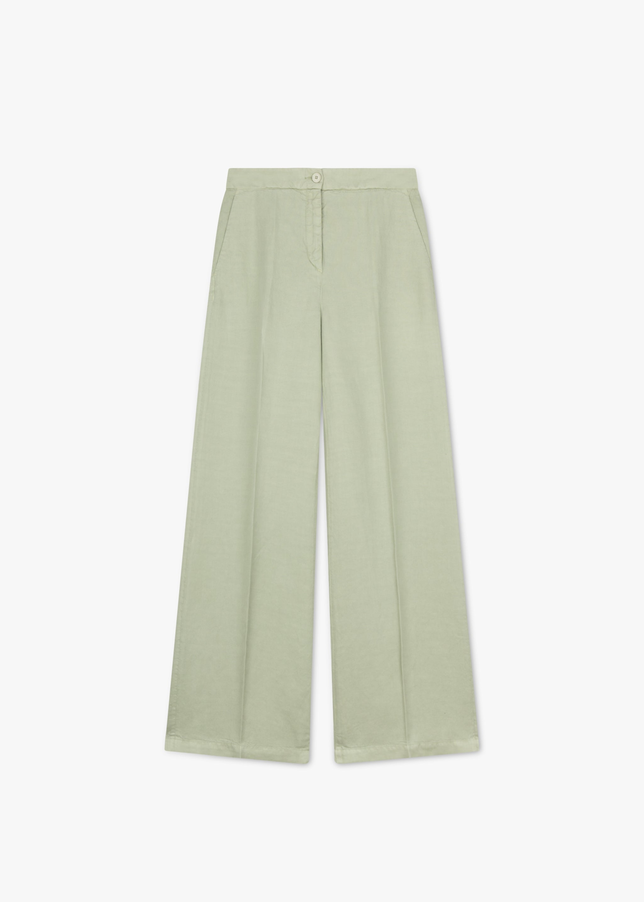 Long trousers 'Panama' by Via Masini 80, button and zipper fastening, pressed creases, darts at the back waistband, side pockets, wide leg, soft feel.