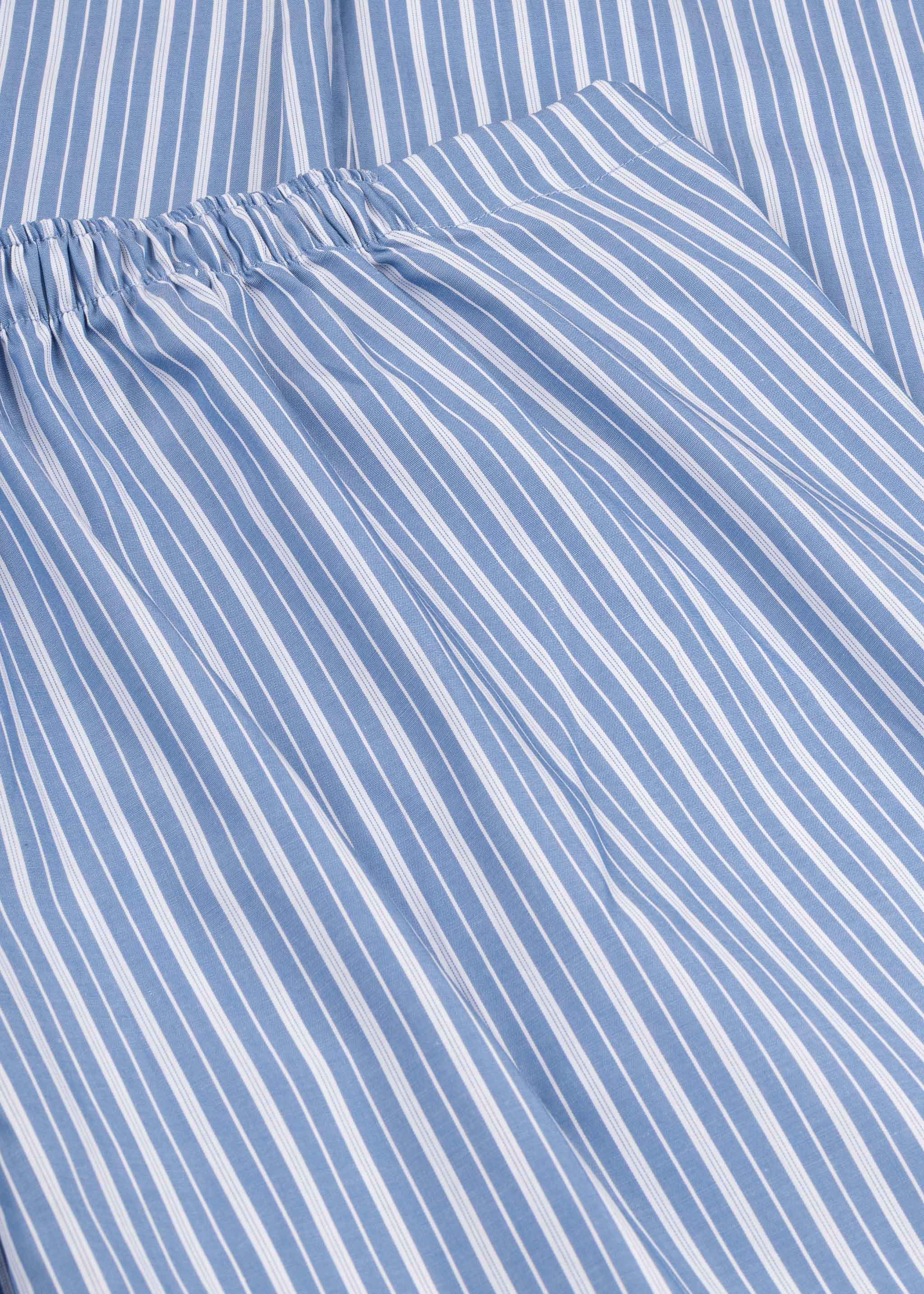 Striped pajama 'Bunny' by Bonsoir made of fine cotton, Peter Pan collar, long sleeves, one chest pocket, full button placket, straight hem, trousers with elastic waistband and drawstring.