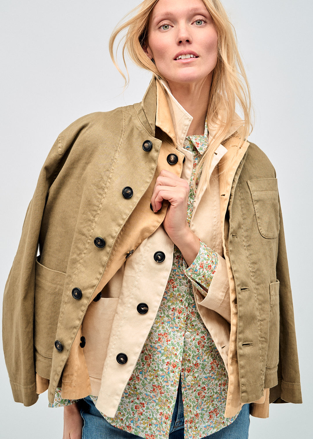 Loose jacket 'Panama' by Circolo 1901, classic collar, dropped shoulders, long sleeves, button placket, three patch pockets, straight hem, unlined finish.