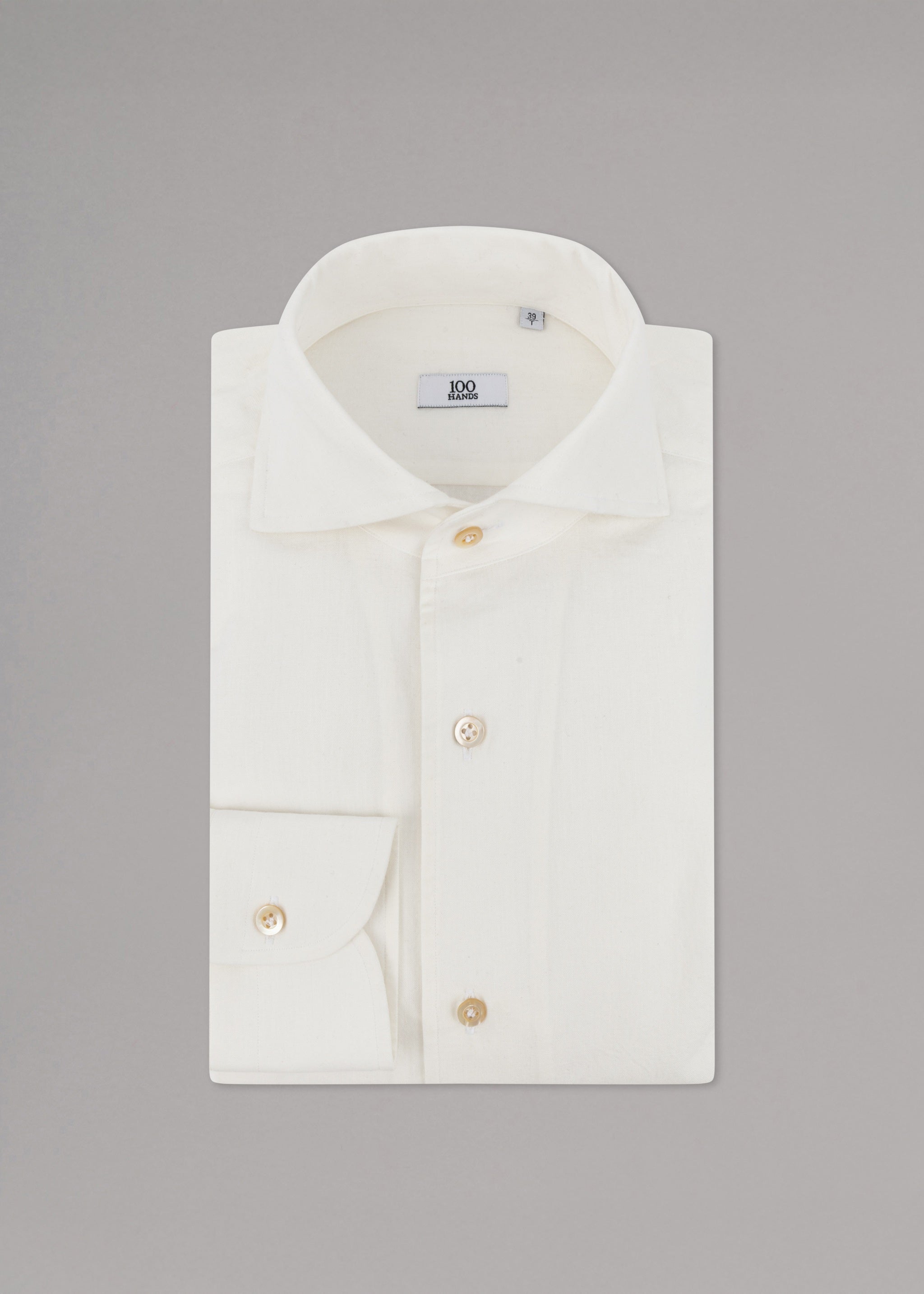 'Shiller' shirt by 100 Hands made of structured cotton, spread collar, full mother-of-pearl button placket, long sleeves with buttoned cuffs, darts in the back, rounded hem.