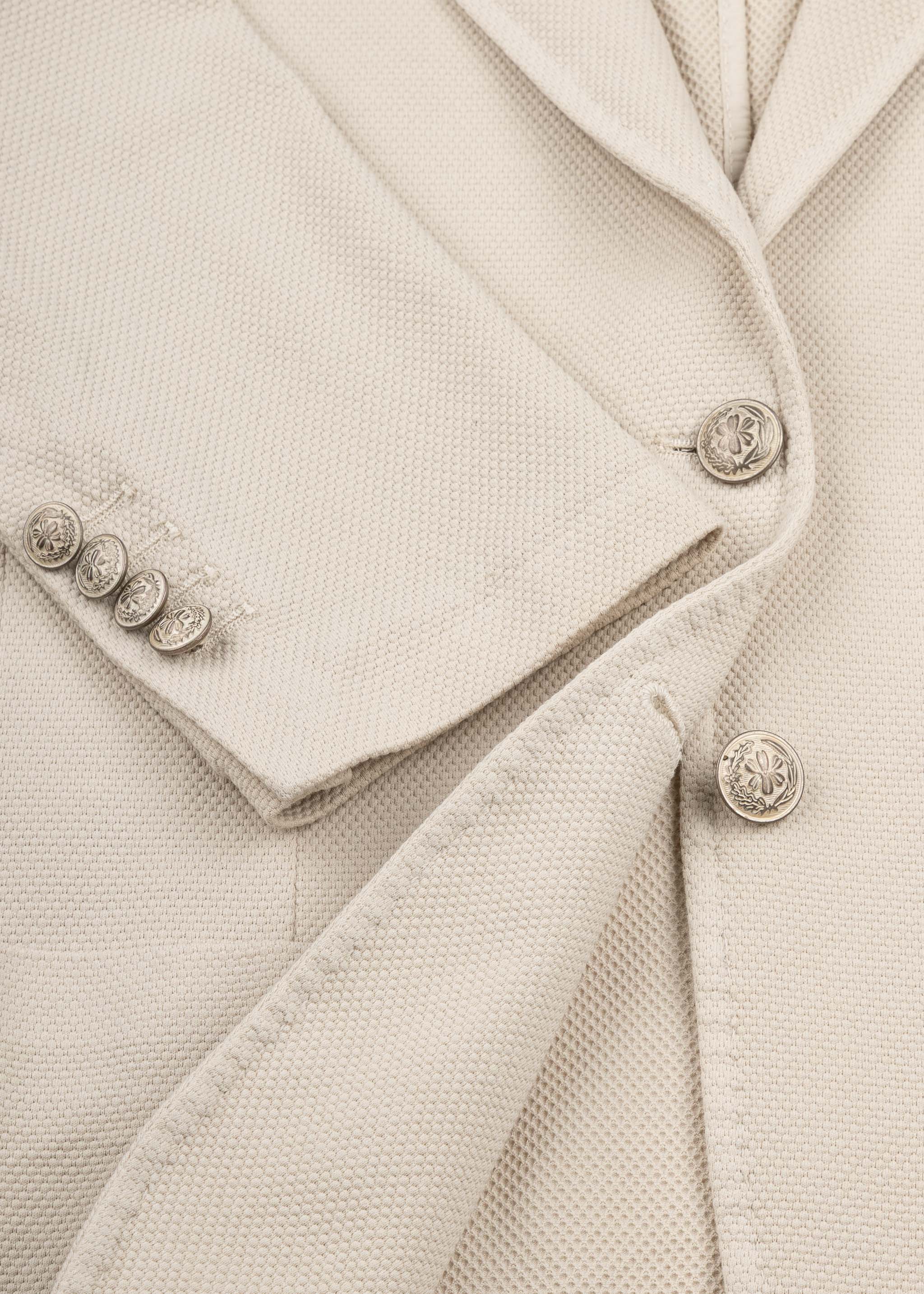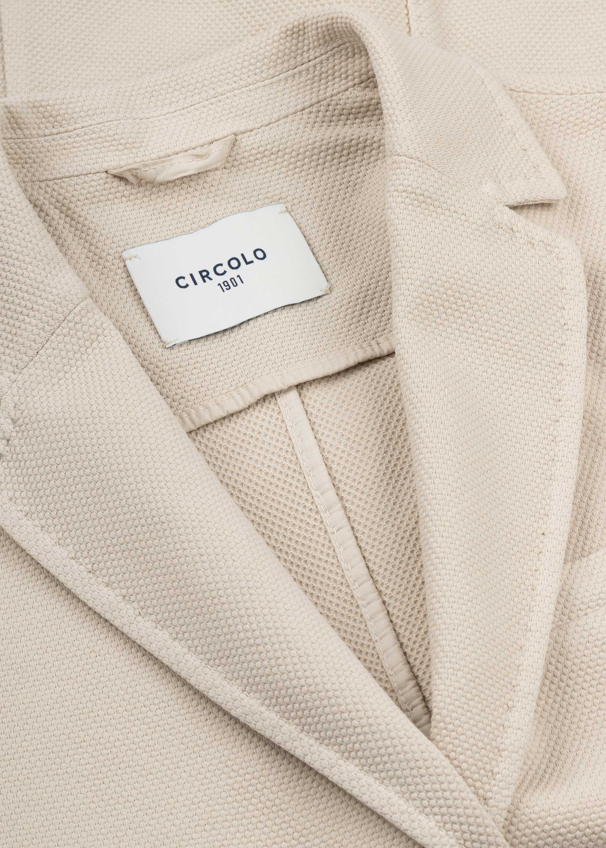 Structured blazer by Circolo 1901, notched lapel, long sleeves with buttoned cuffs, statement buttons, one chest pocket, two patch pockets, darts in the front and back, decorative seams, slightly rounded hem, stretch fabric, unlined.