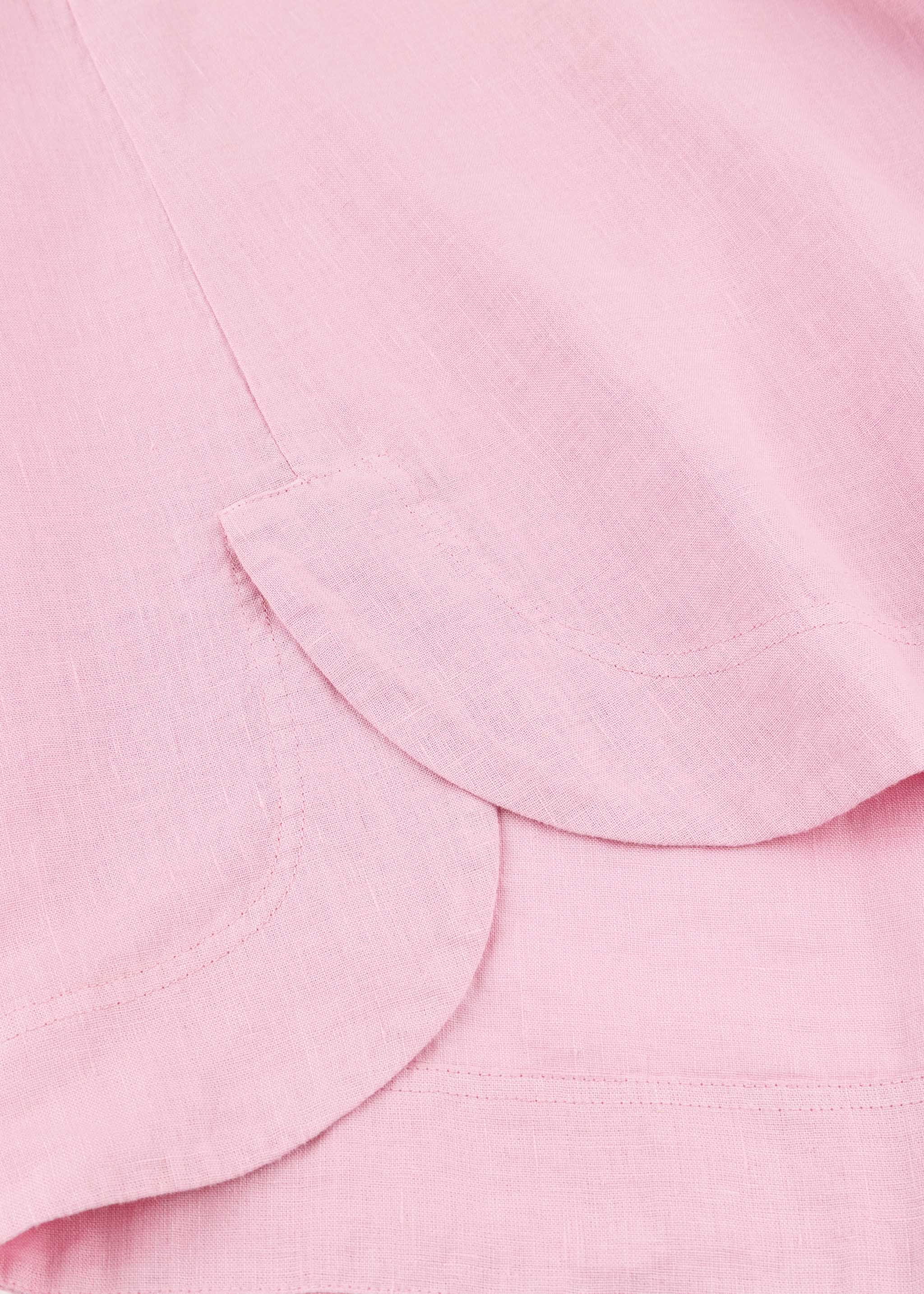 Blouse by Rosso35 made of soft linen, stand-up collar, full button placket, bust darts, box pleat in the back, rounded hem, soft material.