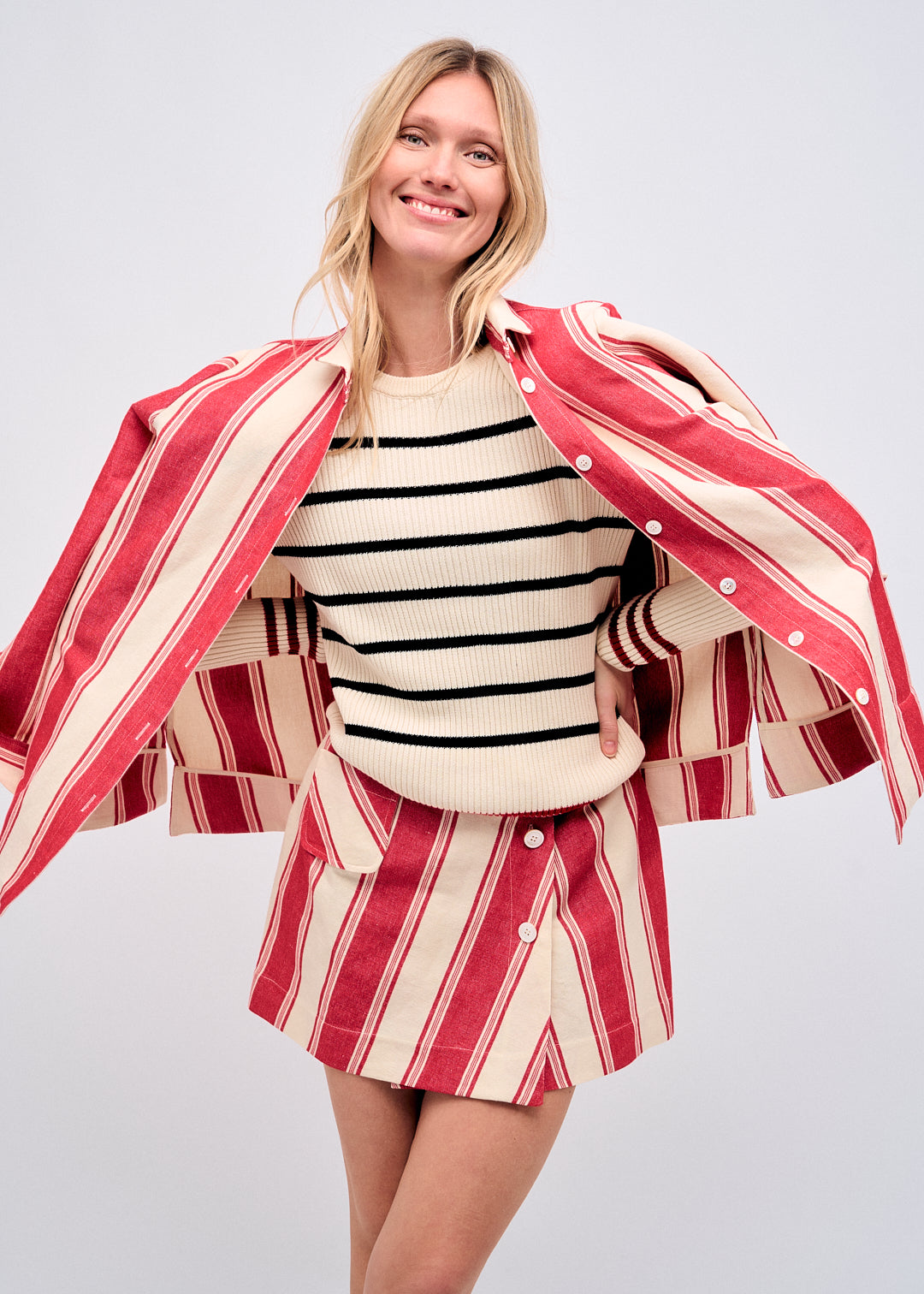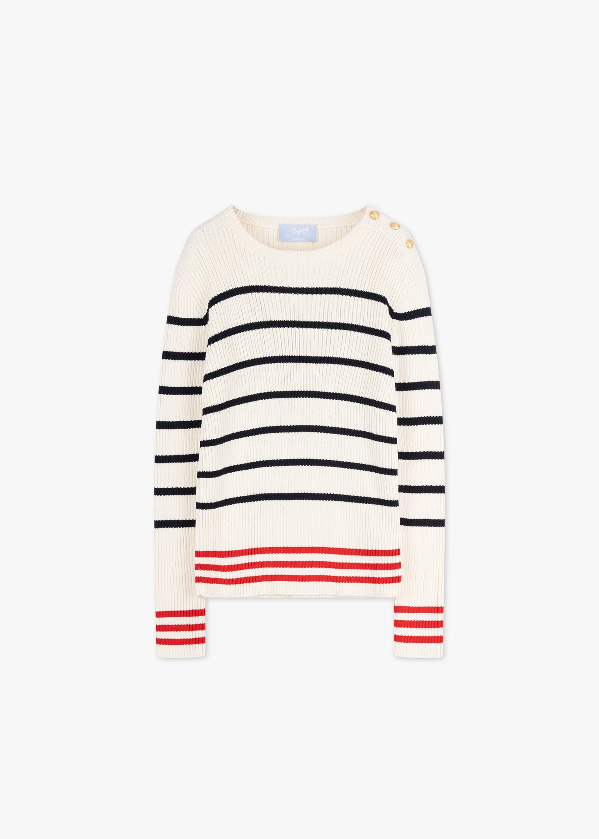 Body-hugging knit sweater from Seafarer made of soft cotton, round neck with statement buttons, long sleeves, ribbed cuffs.