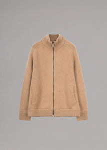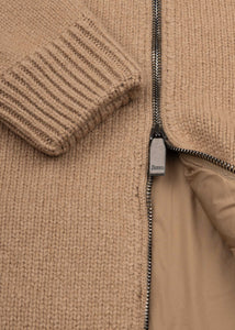 Warme Ripp-Strick-Jacke von Herno, Stehkragen, Zwei-Wege-Reißverschluss, lange Ärmel, seitliche Eingrifftaschen, gefütterte Verarbeitung, gerader Saum.
