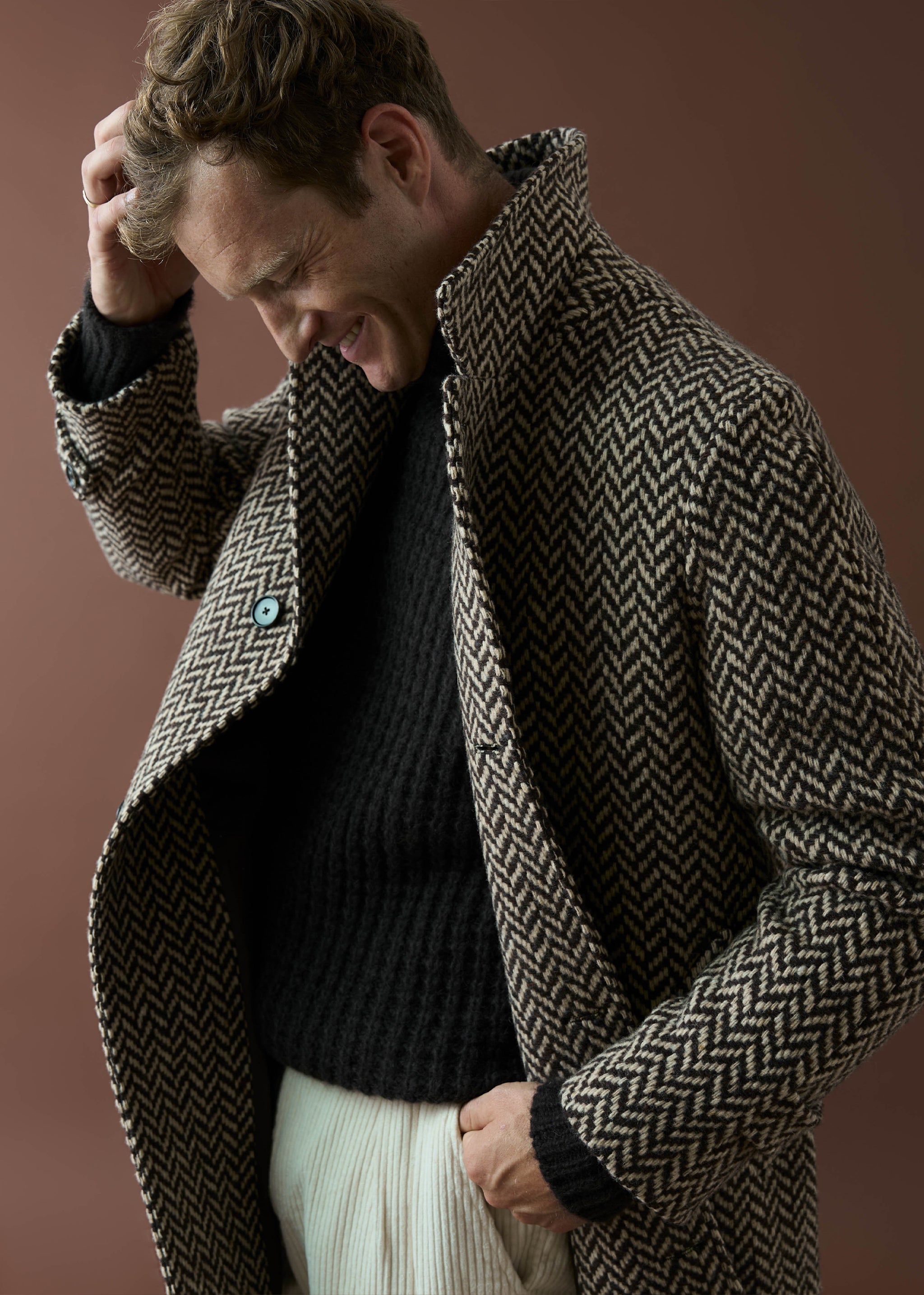 'Douglas' Schurwollmantel mit Fischgrätmuster