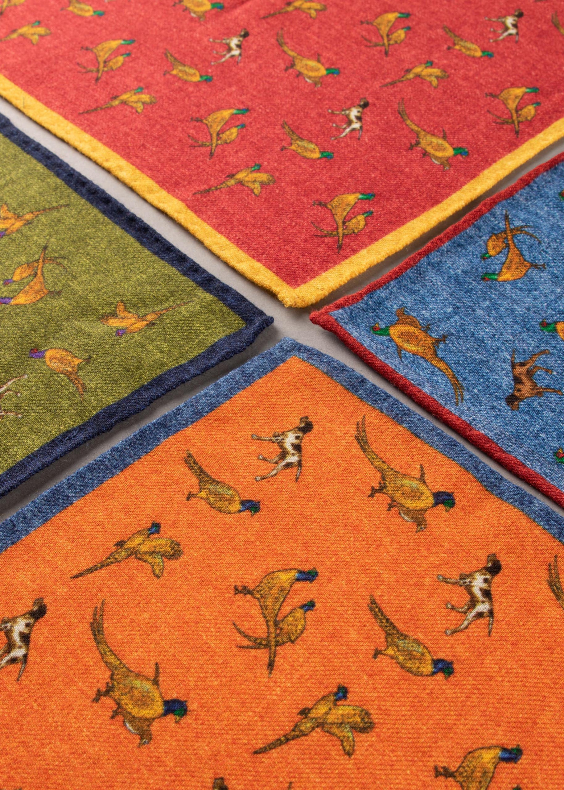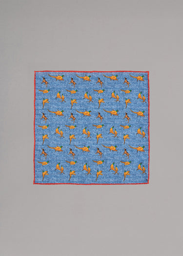 Blau bedrucktes Einstecktuch von Dantendorfer aus reiner Wolle.