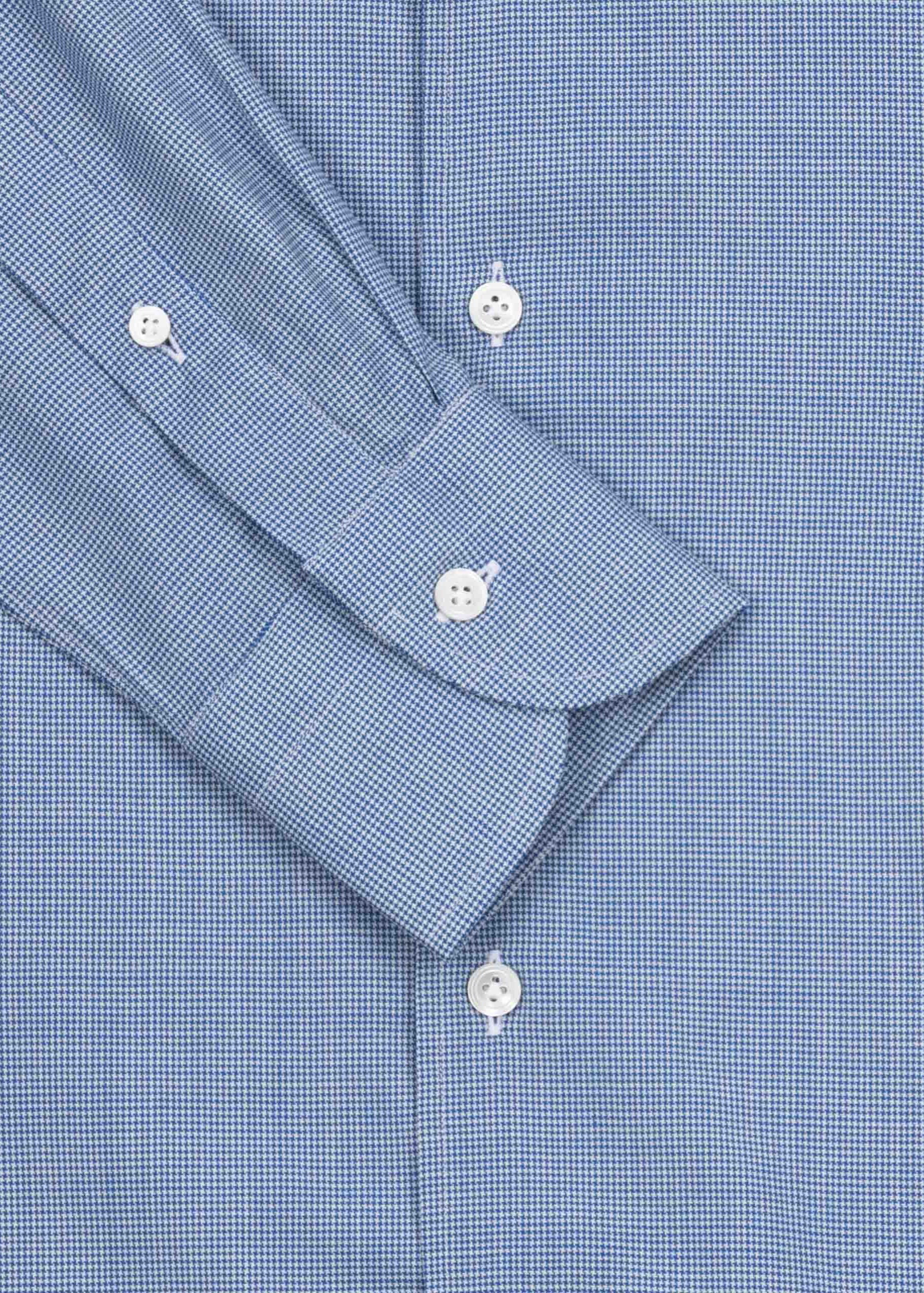 - Farbe: Blau-Weiß, feines Hahnentritt-Muster