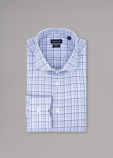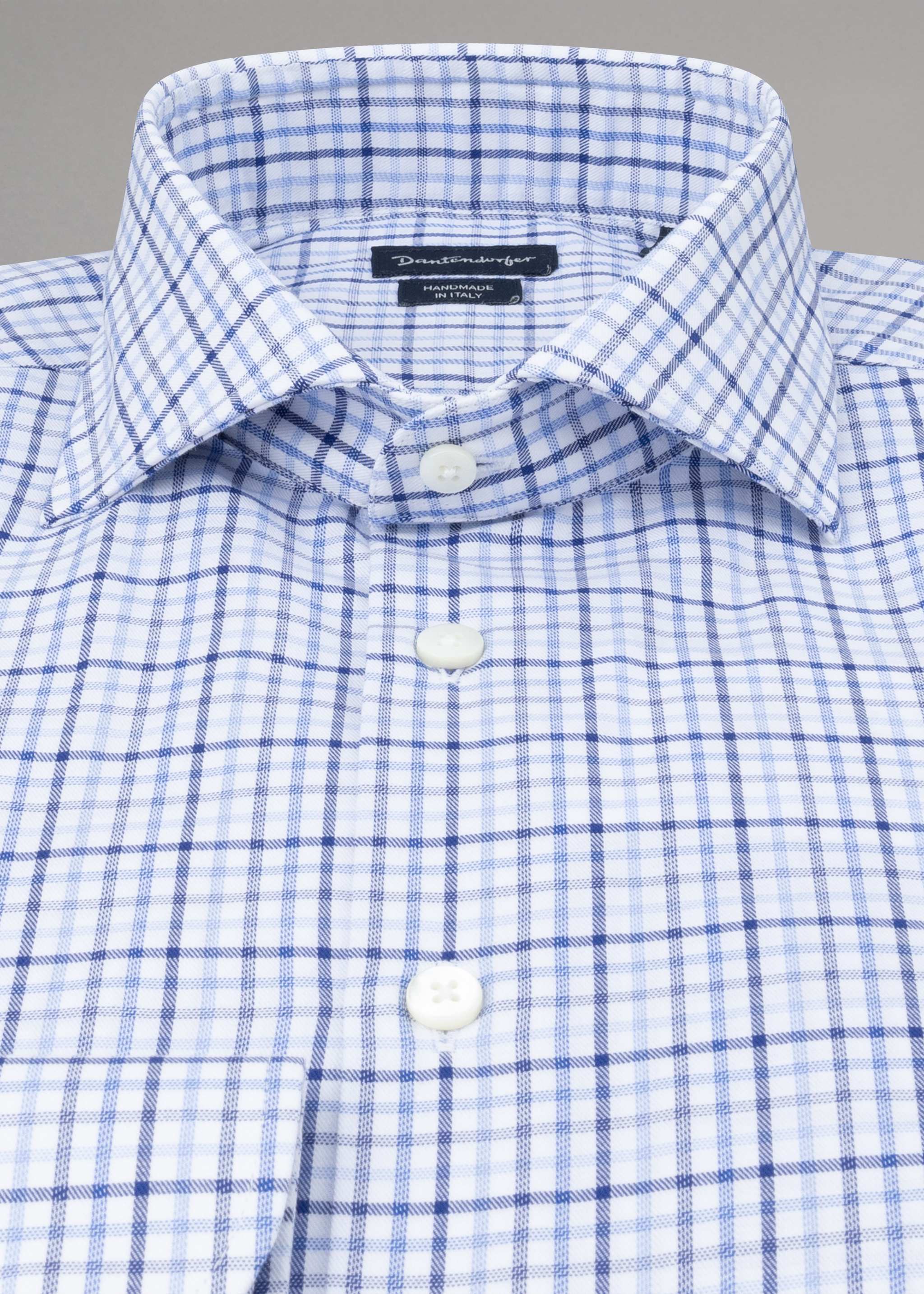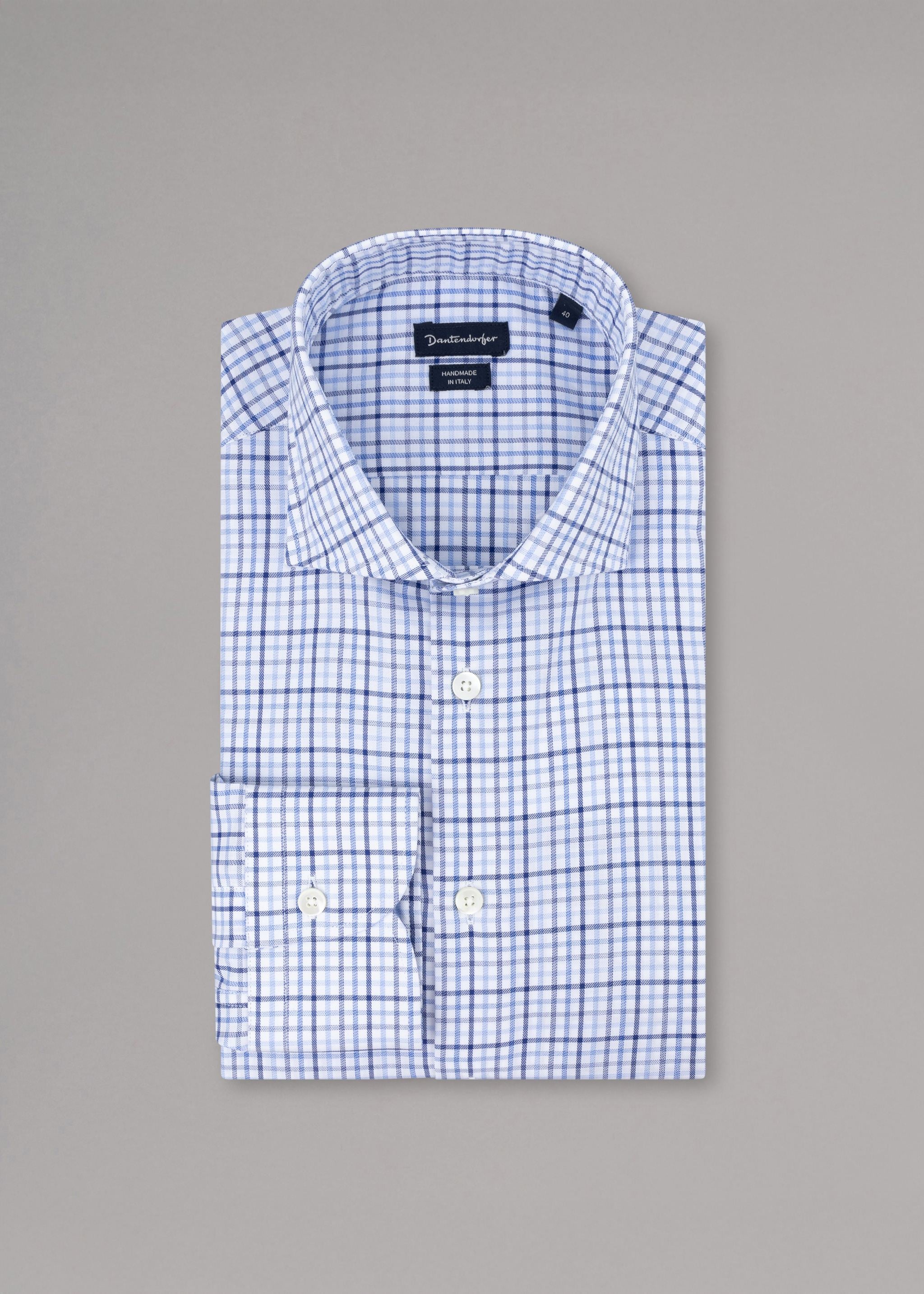 Handgefertigtes Hemd von Dantendorfer aus weicher Baumwolle, Haifischkragen, Rückenpasse, lange Ärmel mit Knopfmanschette, durchgehende Knopfleiste, abgerundeter Saum.