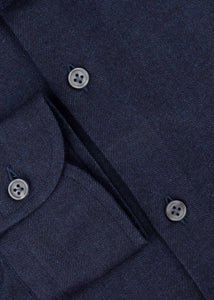 Hemd von Sonrisa aus leichtem Baumwoll-Flanell mit Fischgrät-Muster, Haifischkragen, Rückenpasse, durchgehende Knopfleiste, lange Ärmel mit Knopfmanschette, abgerundeter Saum.