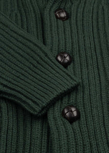 Cardigan aus einem Woll-Kaschmirmix von Mc George Scotland, Schalkragen, durchgehende Knopfleiste, lange Raglanärmel, aufgesetzte Fronttaschen, gerader Saum.