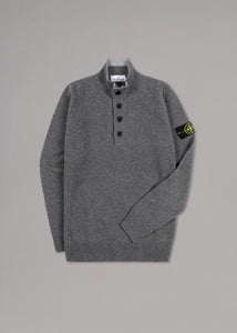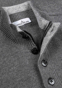 Strick-Pullover von Stone Island, Stehkragen mit Filzbesatz, Knopf- und Reißverschluss, abnehmbares Stone Island-Badge am linken Ärmel, gerippte Abschlüsse, gerader Saum.
