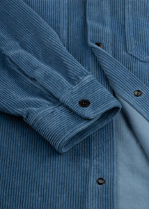 Kord-Shirtjacke von Stone Island aus weicher Bio-Baumwolle, klassischer Kragen, lange Ärmel mit Knopfmanschette, abnehmbares Stone Island-Badge, Druckknopfleiste, zwei Brusttaschen, gerader Saum.
