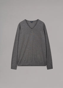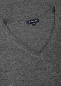 Feiner Kaschmirpullover von Dantendorfer, V-Ausschnitt, lange Ärmel, gerippte Abschlüsse.