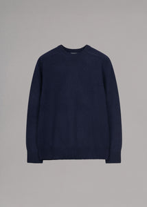 Dunkelblauer Strickpullover von Dantendorfer, Rundhalsausschnitt und gerippte Abschlüsse, Raglanärmel und weiches Material.
