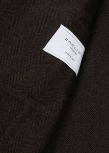 Einreihiges Sakko von Boglioli aus einer weichen Woll-Nylon-Mischung, fallendes Revers, lange Ärmel mit Knopfmanschette, eine Brusttasche, zwei aufgesetzte Taschen, zwei Innentaschen, teilgefütterte Verarbeitung, gerader Saum mit Gehschlitzen.