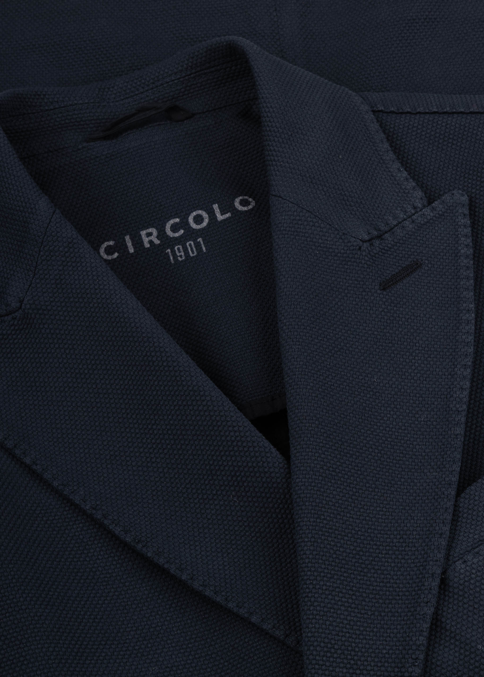 Strukturiertes Slim-Fit Sakko 'Oxford' von Circolo 1901 mit feiner Wabenstruktur, doppelreihig, steigendes Revers, eine Brusttasche, zwei aufgesetzte Taschen, eine Innentaschen, Ärmel mit Knopfmanschette, teilgefütterte Verarbeitung, abgerundeter Saum mit Gehschlitzen.