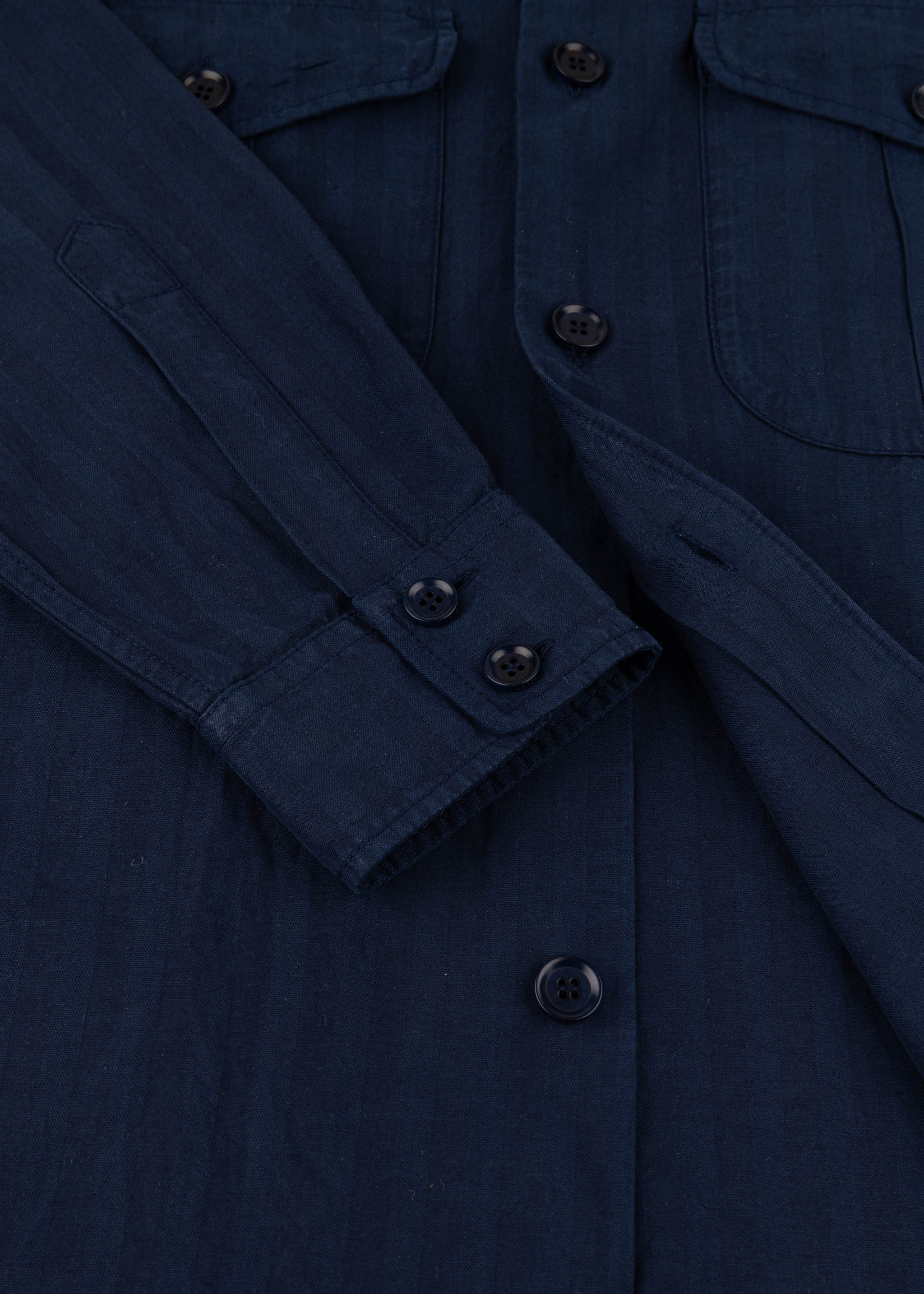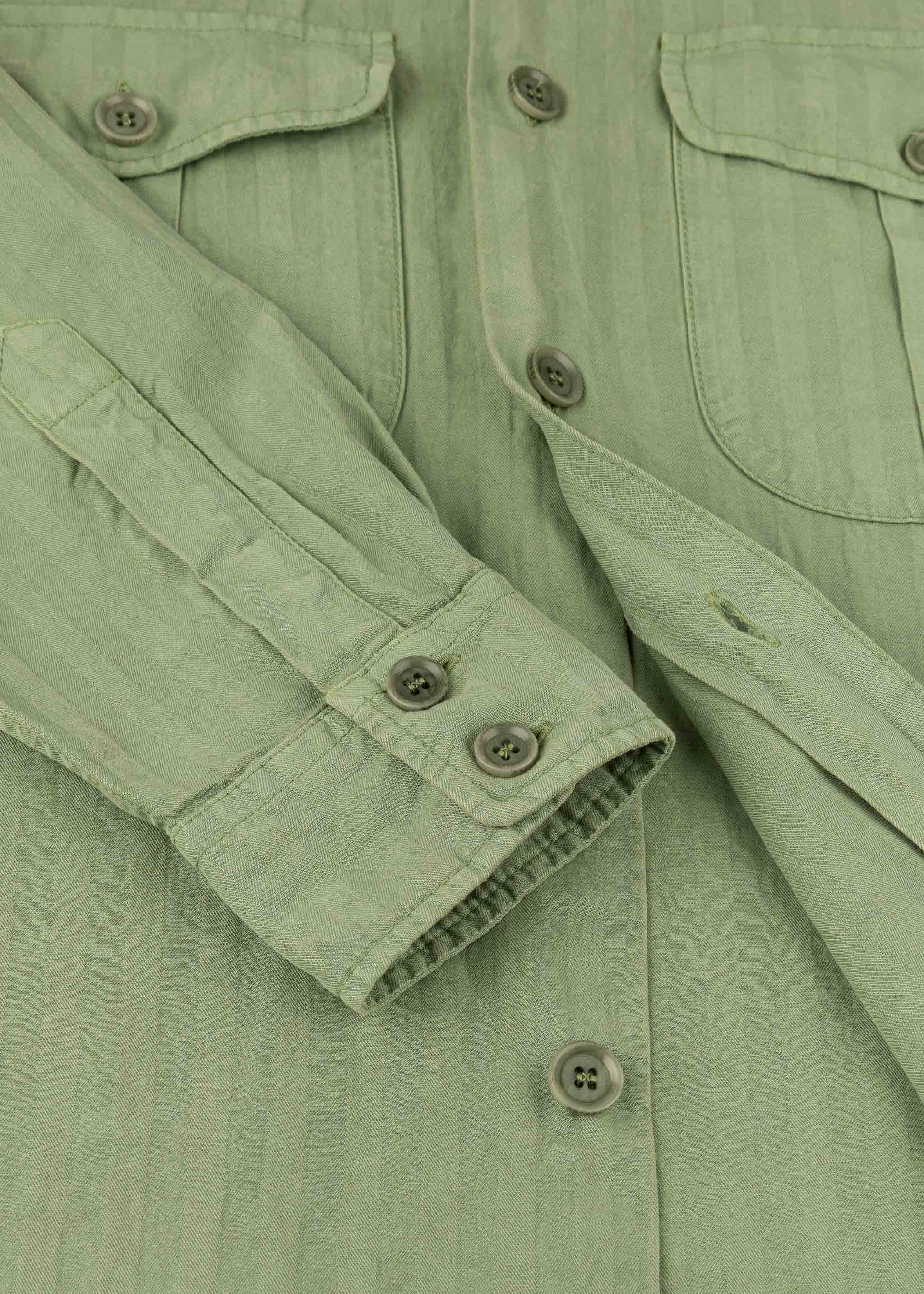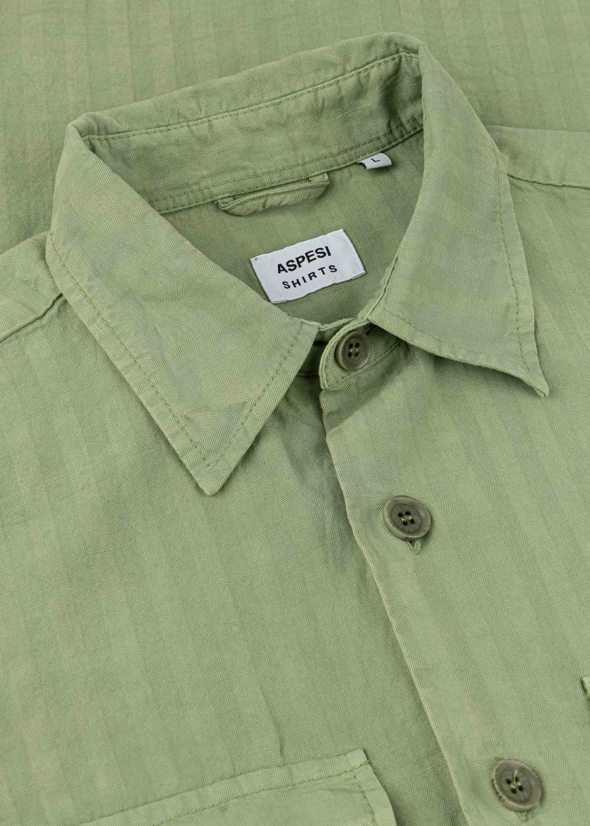 Lässiges Utility-Hemd von Aspesi aus feinem Materialmix, Ton-in-Ton Streifen, klassischer Kragen, lange Ärmel mit Knopfmanschetten, zwei Brusttaschen mit Patte, Knopfleiste, gerader Saum, weicher Griff.