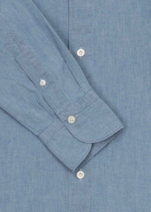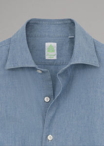 Feines Jeansemd 'Luigi Gaeta' von Finamore, Haifischkragen, durchgehende Knopfleiste, lange Ärmel mit Knopfmanschette, abgerundeter Saum.