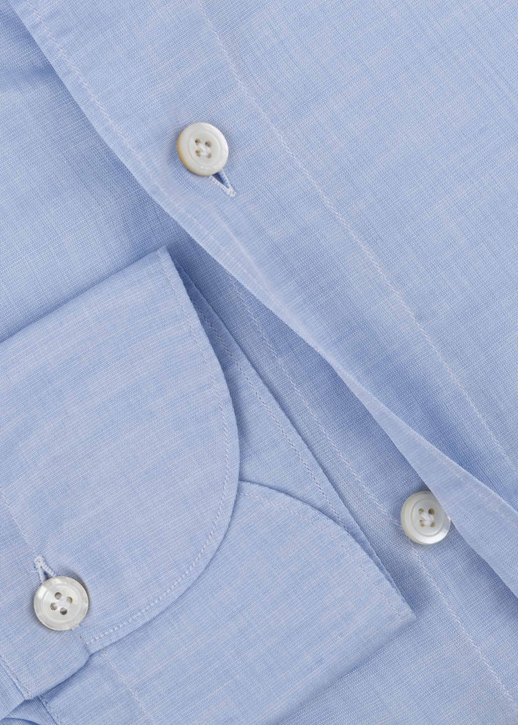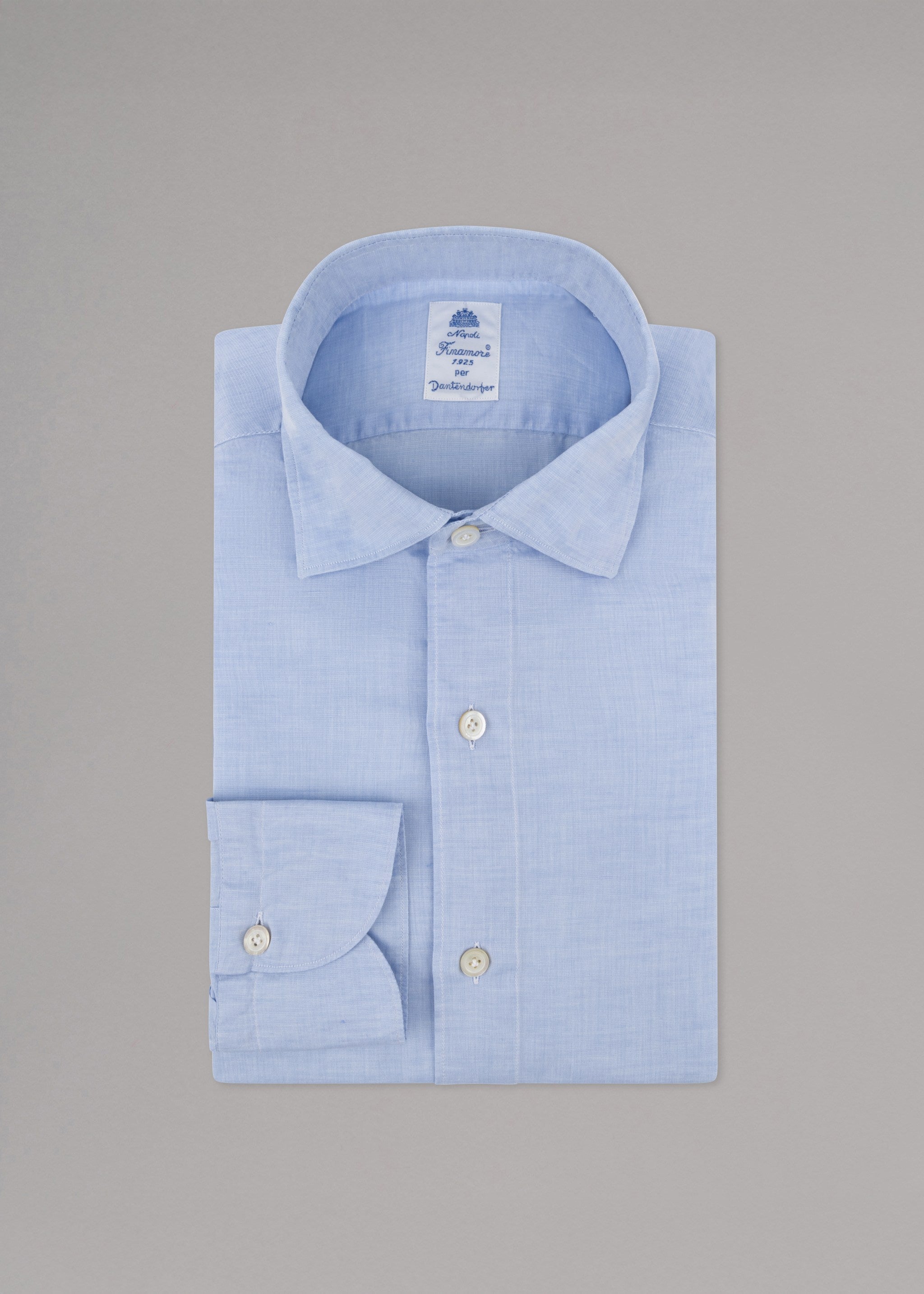 Hemd 'Luigi' von Finamore aus einem Baumwoll-Leinen-Mix, Haifischkragen, durchgehende Knopfleiste, Rückenpasse, lange Ärmel mit Knopfmanschette, abgerundeter Saum, leicht transparent.