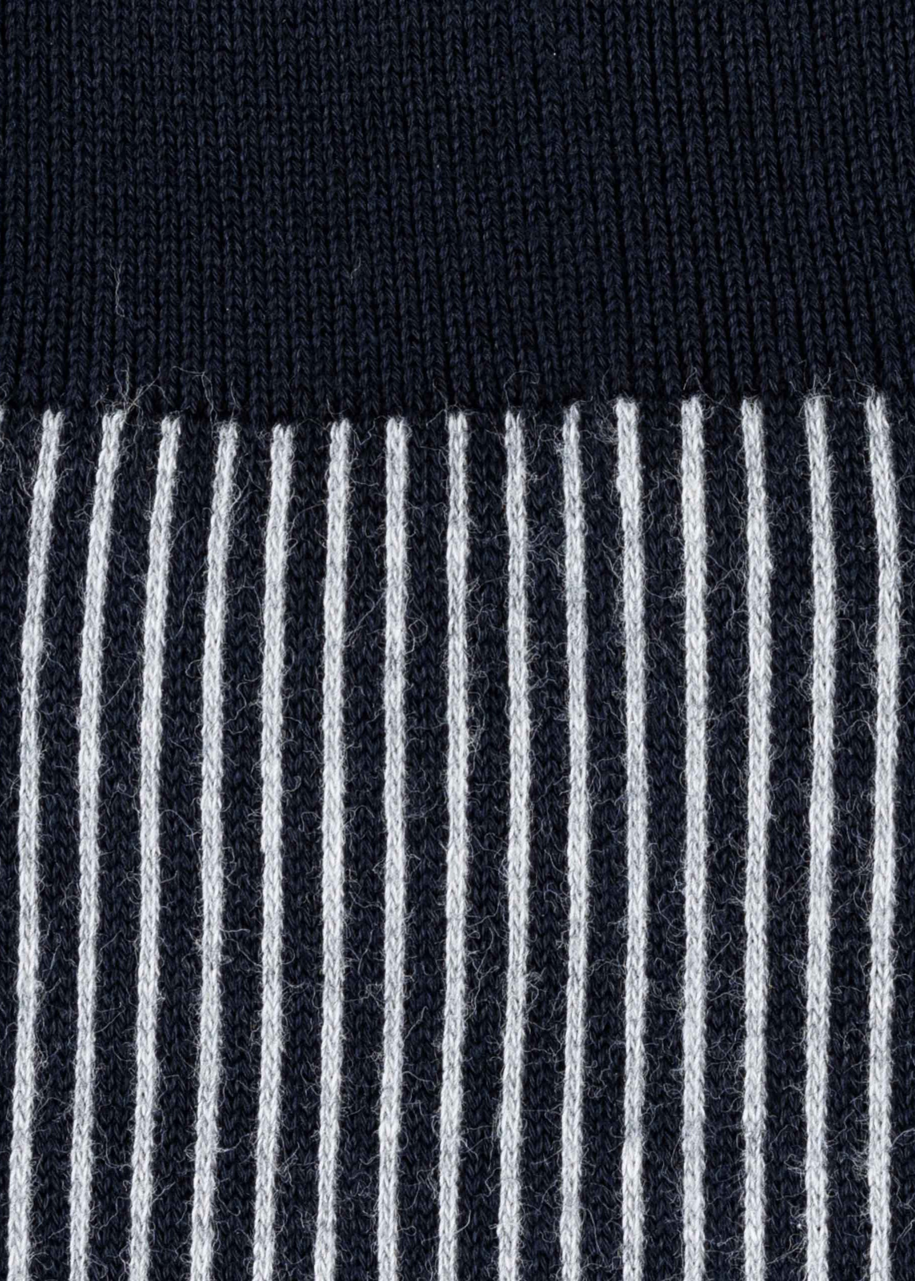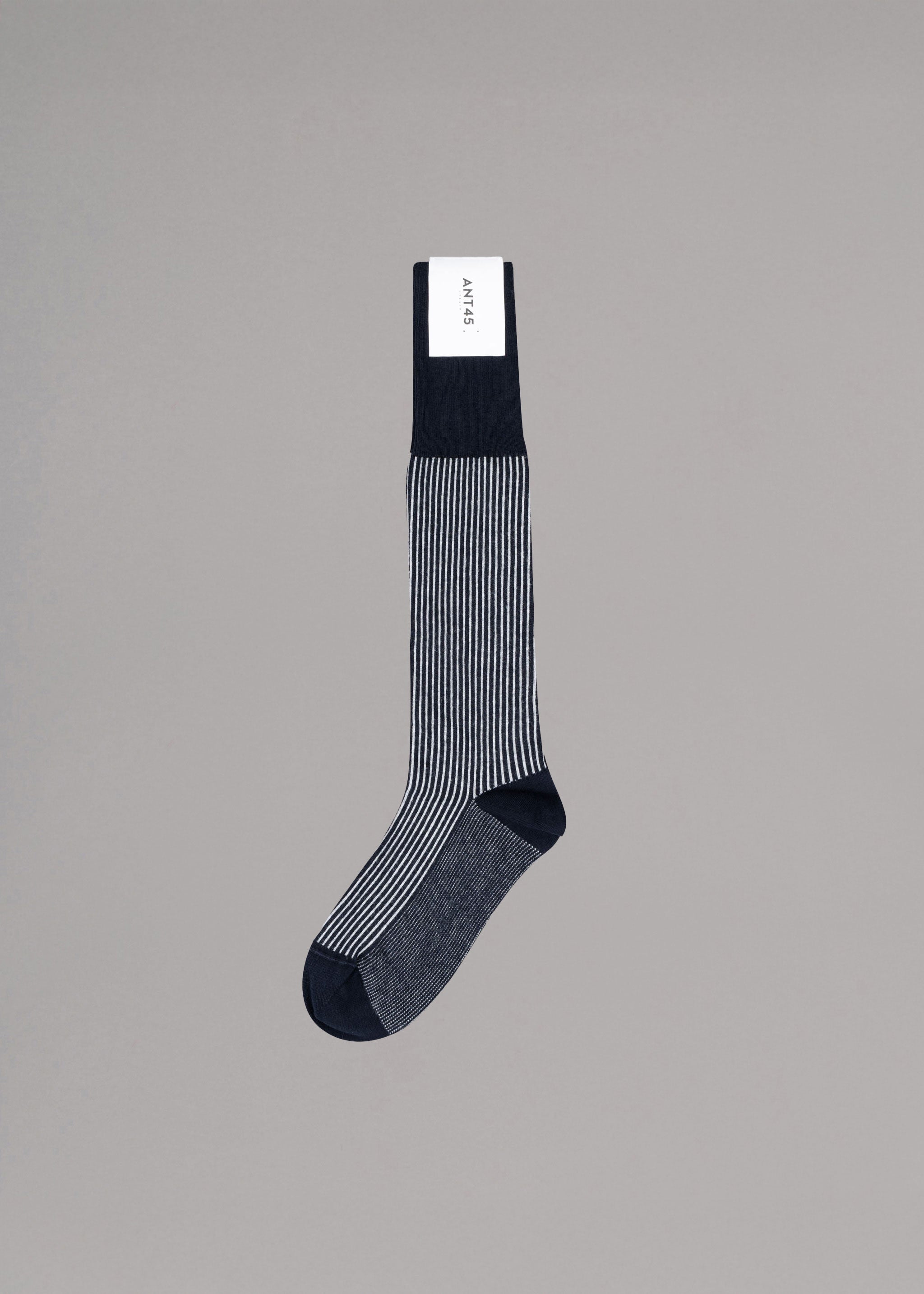 Dunkelblaue Stutzen von Ant45, Rippstrick, mit Bündchen und Kontrasteinsätzen.