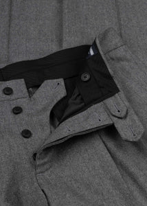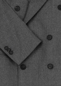 Doppelreihiger Anzug von Carlo Piombo aus Schurwolle, steigendes Revers, Brusttasche, zwei aufgesetzte Paspelltaschen, zwei Innentaschen, zwei Gehschlitze und Ärmel mit jeweils vier Manschettenknöpfen. Hochzeitsanzug