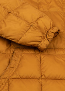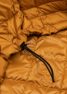 Wattierte Jacke von Taion, Kapuze mit Bändchen, hoher Kragen, große gepolsterte Fronttasche, elastischer Kordelzug am Saum, Oversized-Passform.