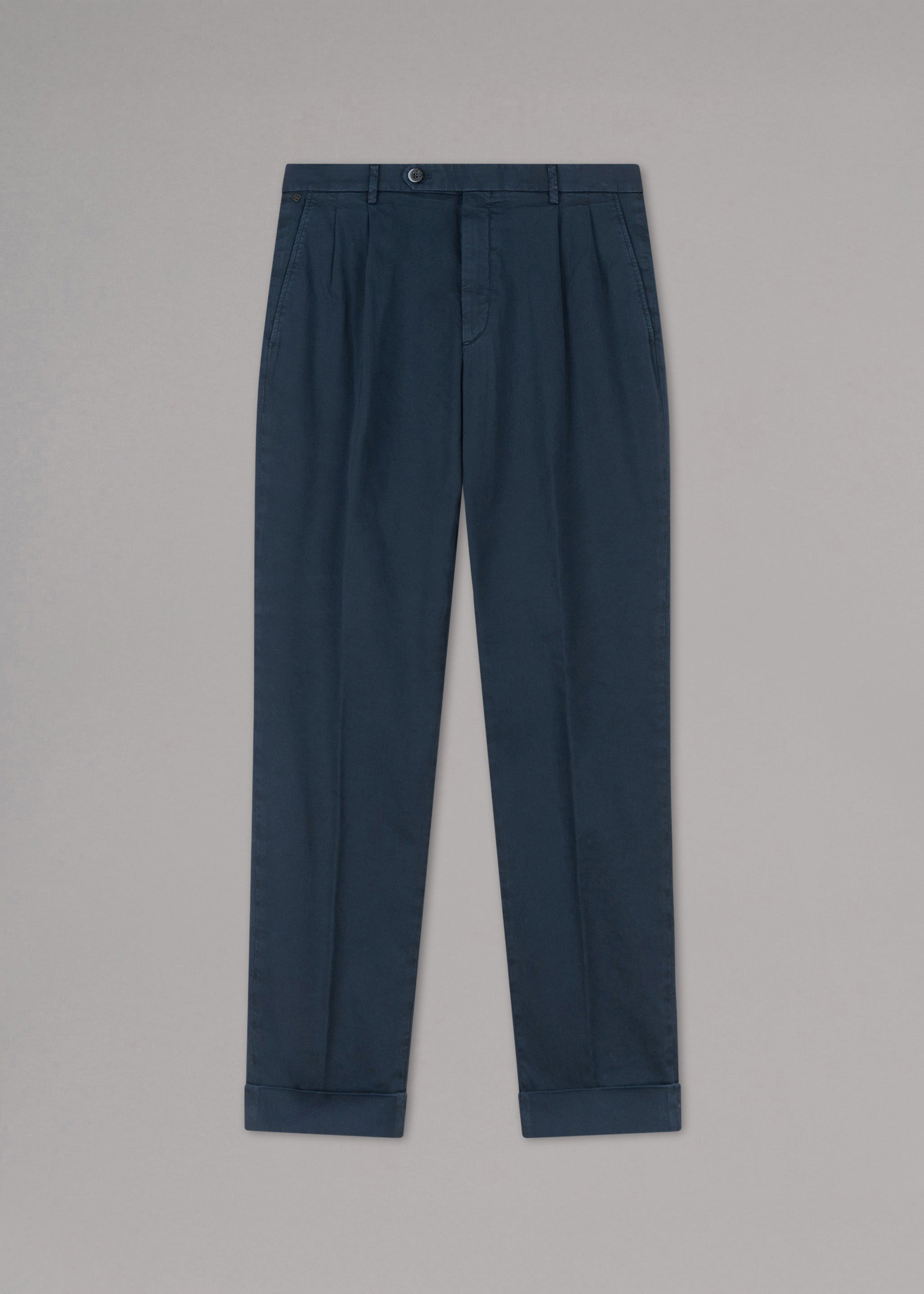 Hose 'Luca' mit Bundfalten von GTA aus Baumwolle mit Stretch-Anteil, elastischer Bund, Knopfverschluss mit Riegel und Reißverschluss, seitliche Eingriffstaschen, geknöpfte Paspelgesäßtaschen, Bügelfalten, Beinsaum mit Umschlag.