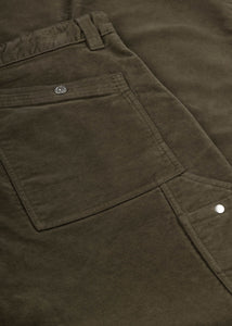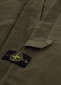 Loose-Fit Workwearhose von Stone Island aus robustem Baumwollmoleskin, Gürtelschlaufen, Knopf- und Reißverschluss, Münztasche, Eingriffstaschen, Gesäßtaschen, Bandschlaufe, kleine Tasche am rechten Bein.