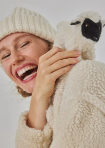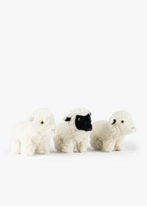 Weiß-schwarzes Mini-Schaf Maskottchen aus Wolle von Yoko.