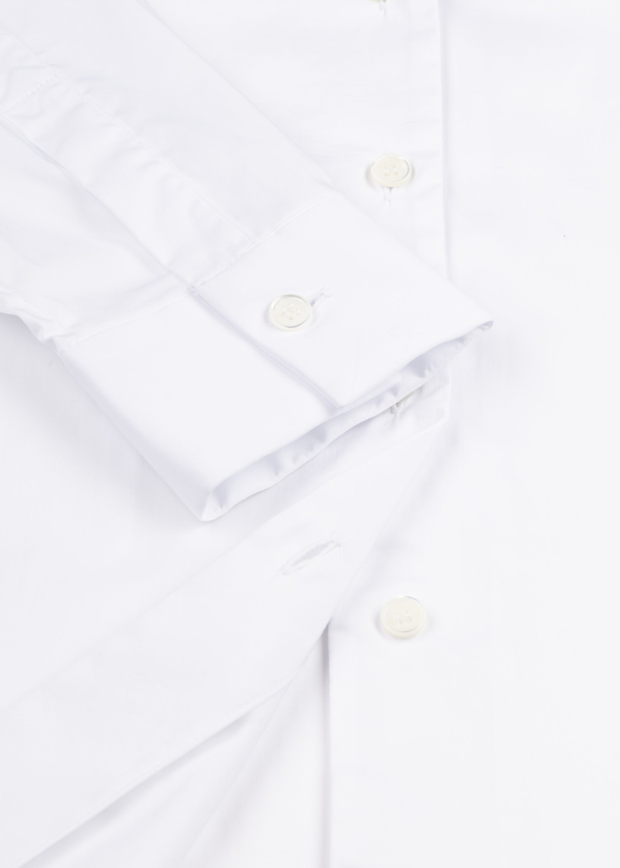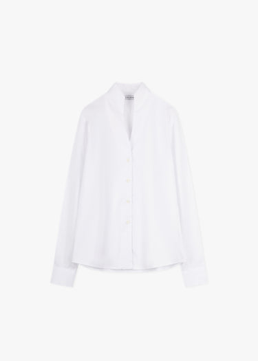 Schmale Bluse von Caliban, tiefer V-Ausschnitt, zwei Taillenabnäher im Rückenteil, lange Ärmel mit Knopfmanschette, leicht verlängerter Saum im Rückenteil, Stretch-Anteil.