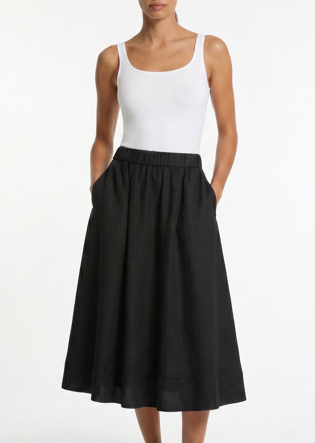 A-Linien Rock von Rosso35, elastischer Bund, seitliche Eingriffstaschen, gerader Saum mit Umschlag.
