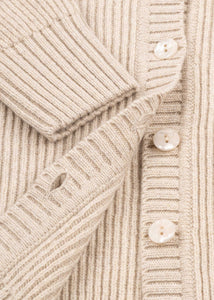 Rippstrickjacke von McGeorge aus einer weichen Woll-Kaschmirmischung, Rundhalsausschnitt, Knopfleiste, lange Ärmel, gerader Saum.