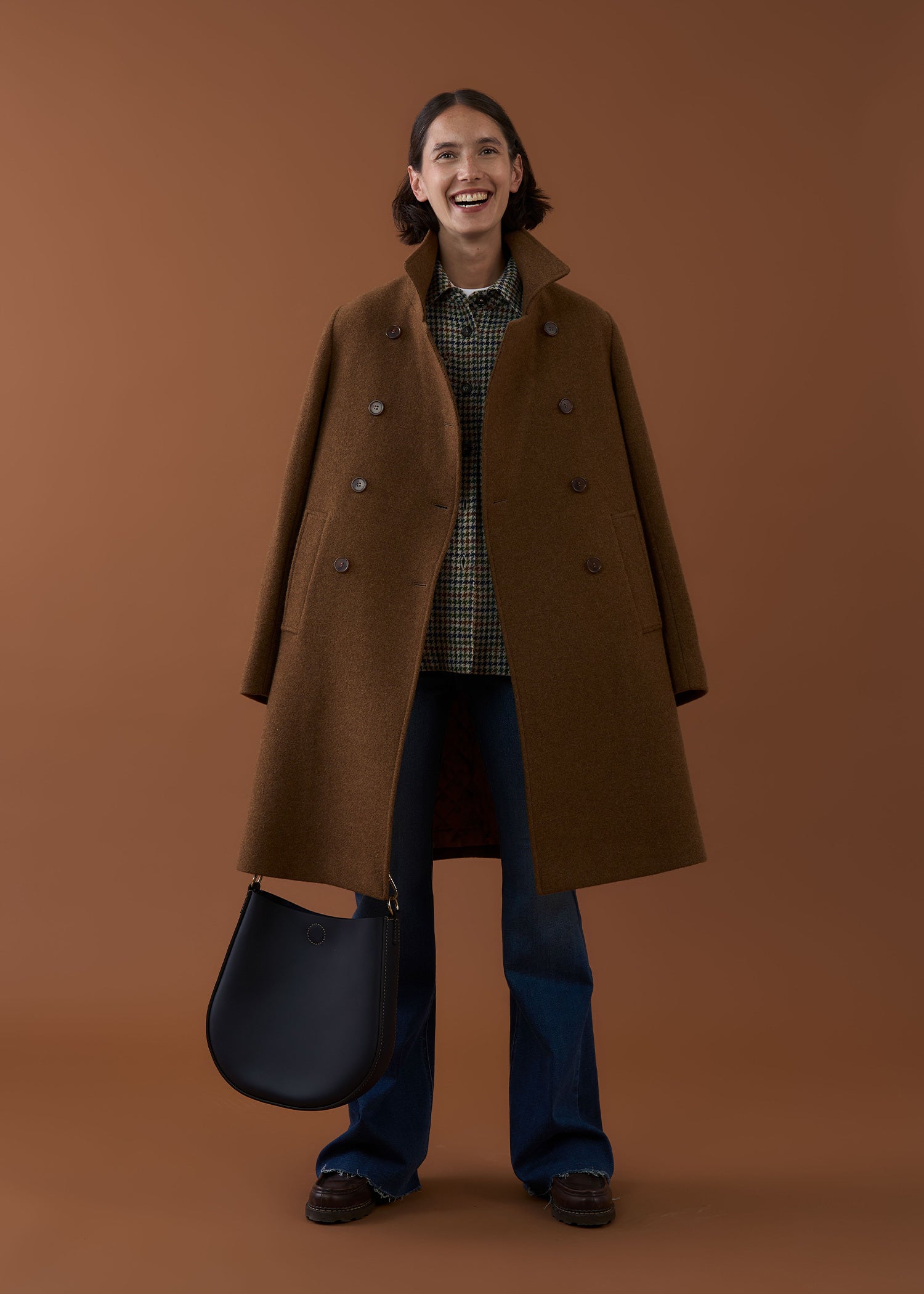 Gefütterter Mantel von Carlo Piombo aus Schurwoll-Twill, fallendes Revers, lange Ärmel, seitliche Eingriffstaschen, gerader Saum, gestepptes Innenfutter.