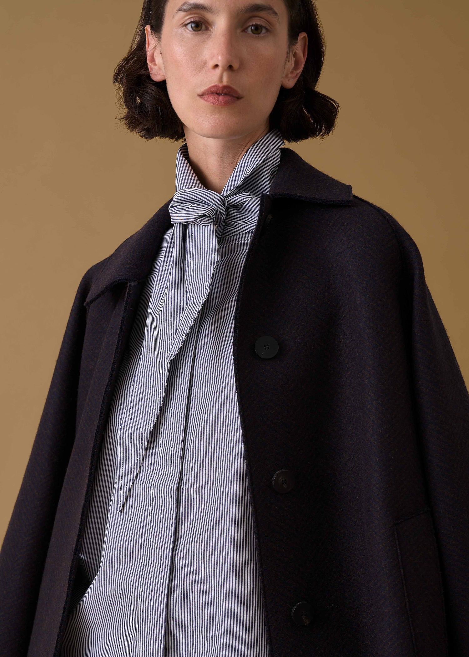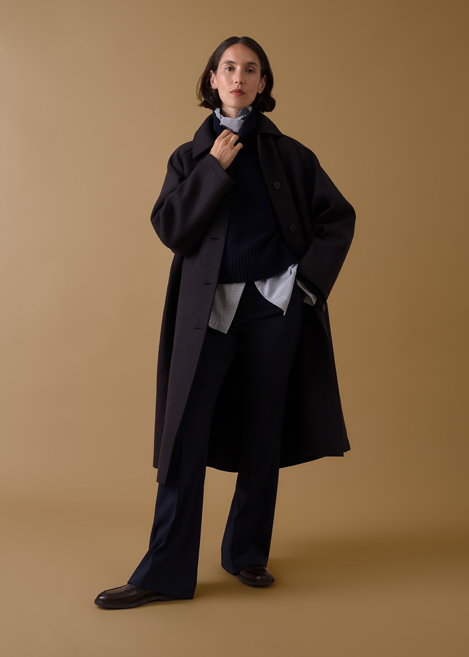 Lockerer Mantel von Harris Wharf aus einem edlen Schurwoll-Kaschmir-Mix mit Fischgrätmuster, klassischer Kragen, weite Raglanärmel, durchgehende Knopfleiste, seitliche Eingriffstaschen, gerader Saum mit Gehschlitz, ungefütterte Verarbeitung, offene Kantenverarbeitung