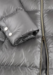 Mittellanger Mantel von Herno, Stehkragen mit Kapuze und Druckknopf, Zwei-Wege-Reißverschluss, lange Ärmel, seitliche Eingriffstaschen mit Druckknopf, gerader Saum, gefütterte Verarbeitung.