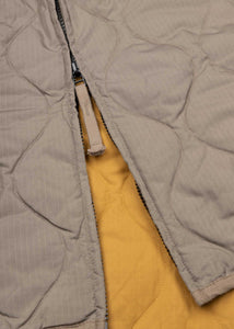Leichter Daunen-Mantel von Taion, Kapuze mit Kordelzug, durchgehenden Knopfleiste, leicht überschnittene Schultern, lange Ärmel, seitliche Reißverschlüsse für zusätzliche Belüftung, gerader Saum.