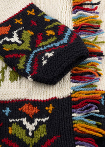 Jacke mit Gürtel von Frantic mit Ethno-Muster, Schalkragen mit Fransen, lange Ärmel, lang geschnitten, abnehmbarer Gürtel und Eingrifftaschen.