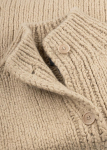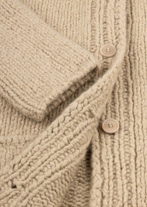Handgestrickte Strickjacke von Wommelsdorff aus einer edlen Kaschmir-Seiden-Qualität, Effekt-Strick, Stehkragen, Knopfleiste, überschnittene Schultern, lange Ärmel, zwei aufgesetzte Taschen, gerader Saum.