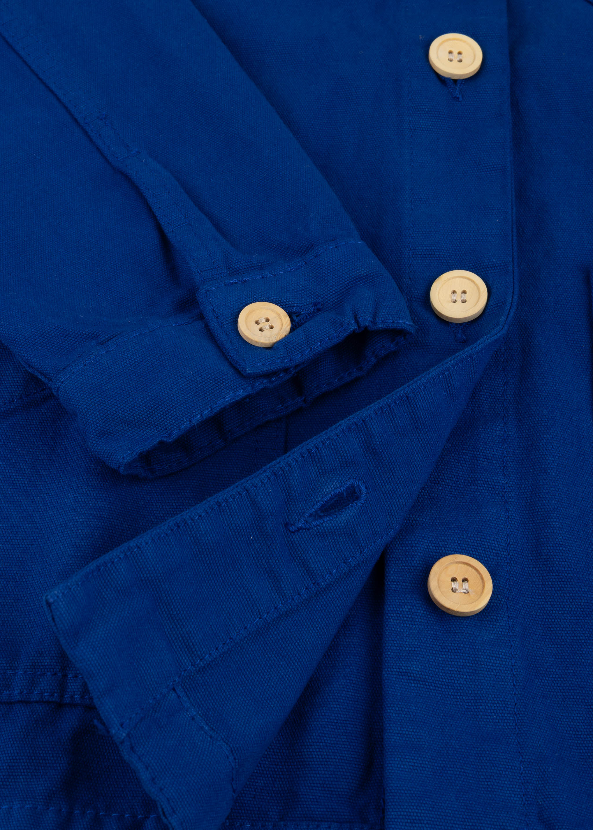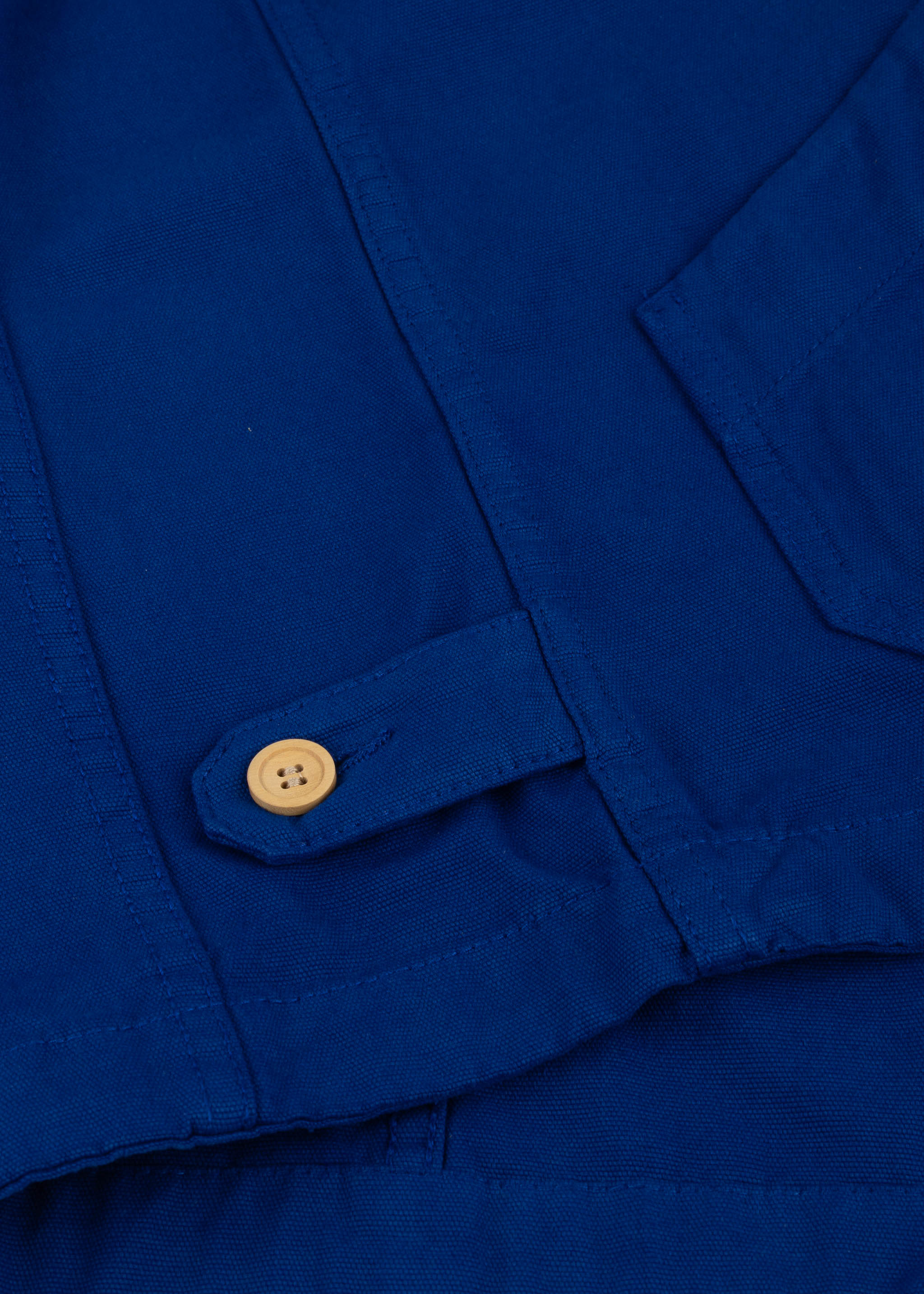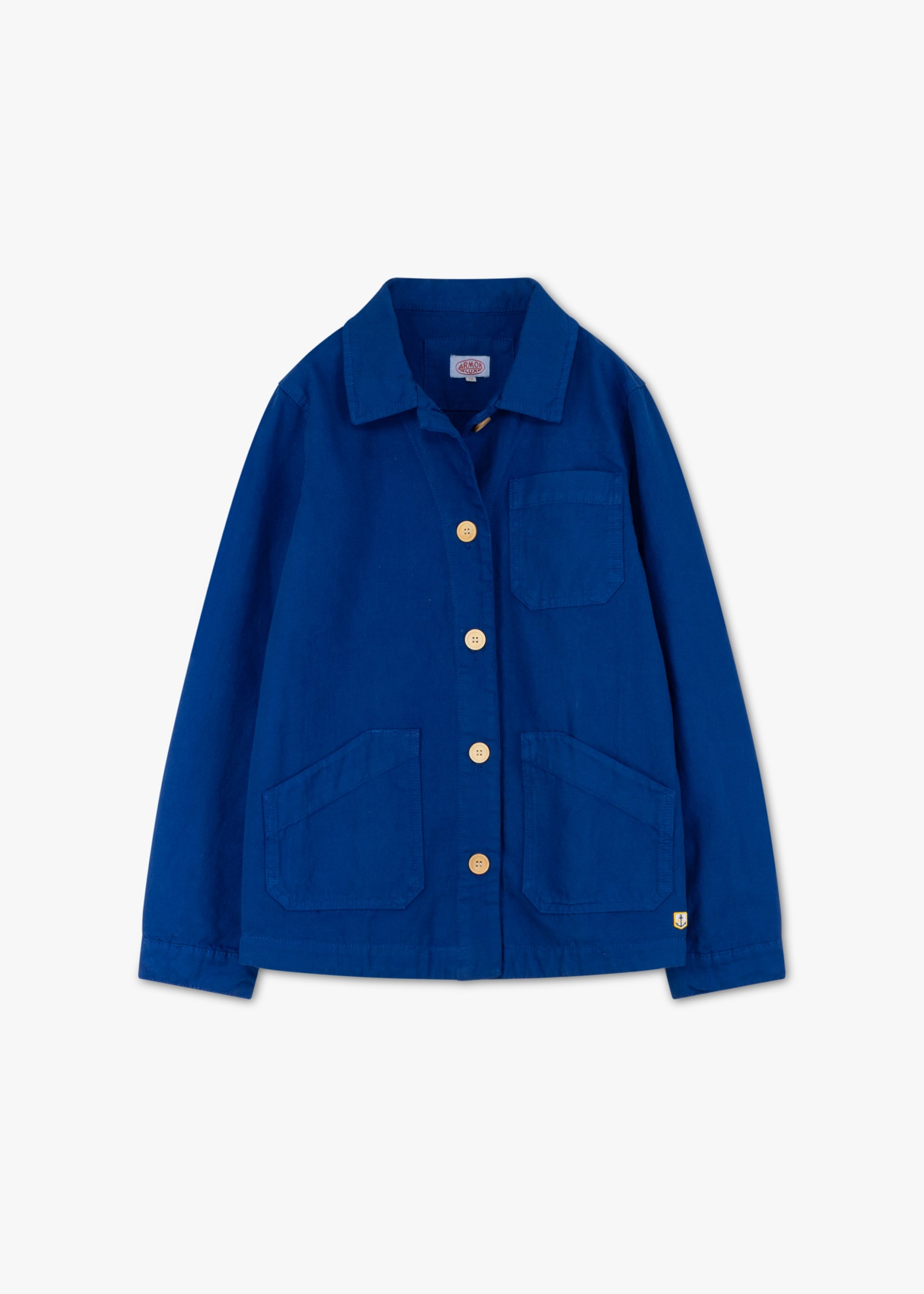 Jacke 'Pecheur' von Armor Lux aus Baumwoll-Canvas, klassischer Kragen, lange Ärmel, durchgehende Knopfleiste, drei aufgesetzte Taschen, Taillenriegel, gerader Saum, ungefütterte Verarbeitung.