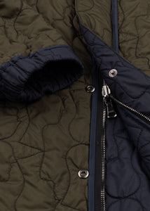 Hüftlange Jacke 'Anni' von Konrad zum Wenden, gerippter Rundhalsausschnitt, lange Ärmel mit elastischen Bündchen, überschnittene Schultern, Zwei-Wege-Reißverschluss, Druckknopfleiste, seitliche Eingriffstaschen, gerader Saum mit Tunnelzug, gefütterte Verarbeitung.