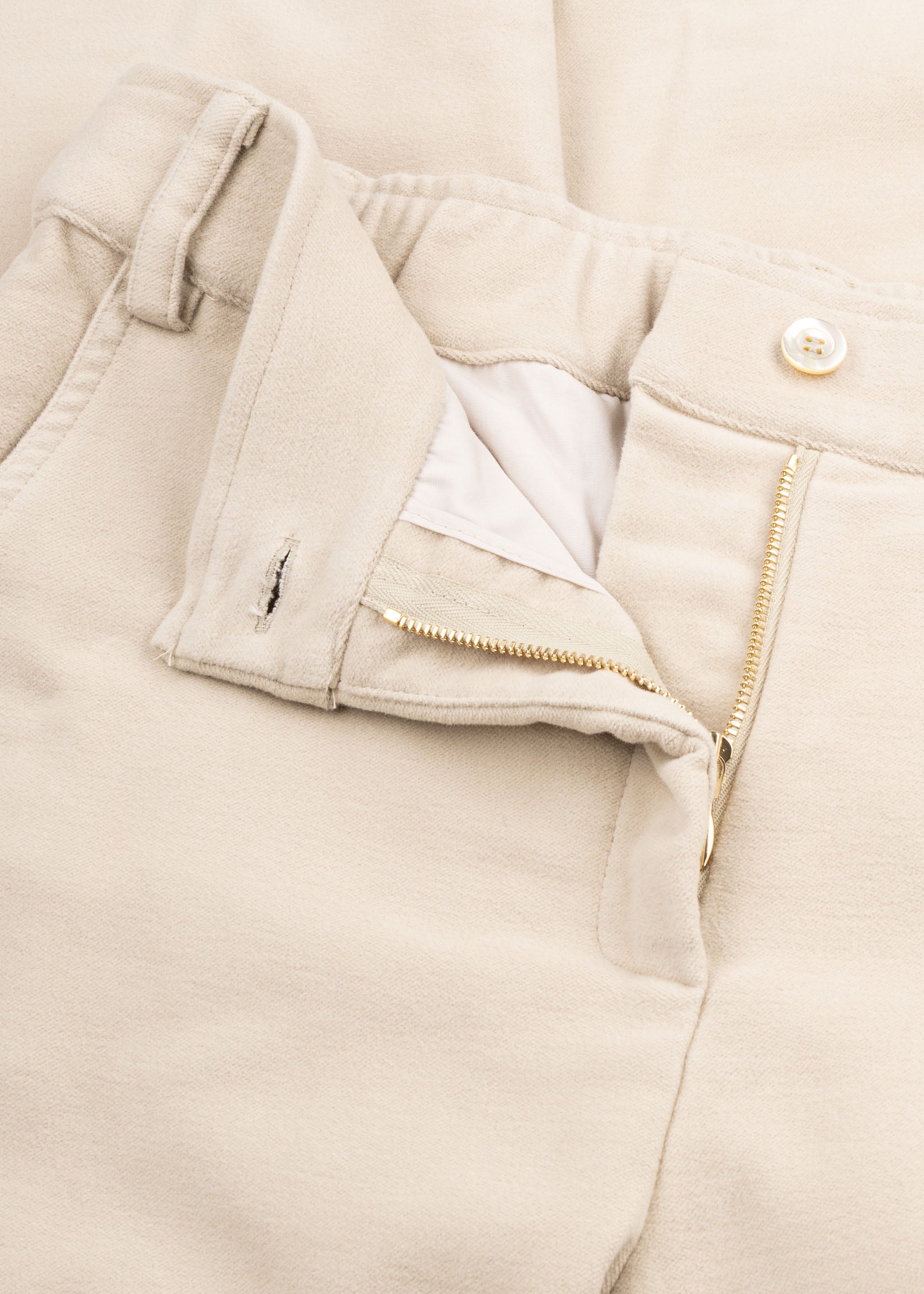 'Safari Jacket' von PiaLea aus Moleskin, klassischer Kragen, durchgehende Knopfleiste, Rückenpasse, lange Ärmel mit Knopfmanschette, vier aufgesetzte Taschen, gerader Saum mit Seitenschlitzen.