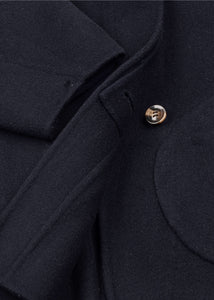 Lockere Jacke 'Windsor' von Soeur aus gekochter Wolle, asymmetrischer Stehkragen, überschnittene Schultern, lange Ärmel, verdeckte Knopfleiste, Eingriffstaschen, gerader Saum, ungefütterte Verarbeitung.
