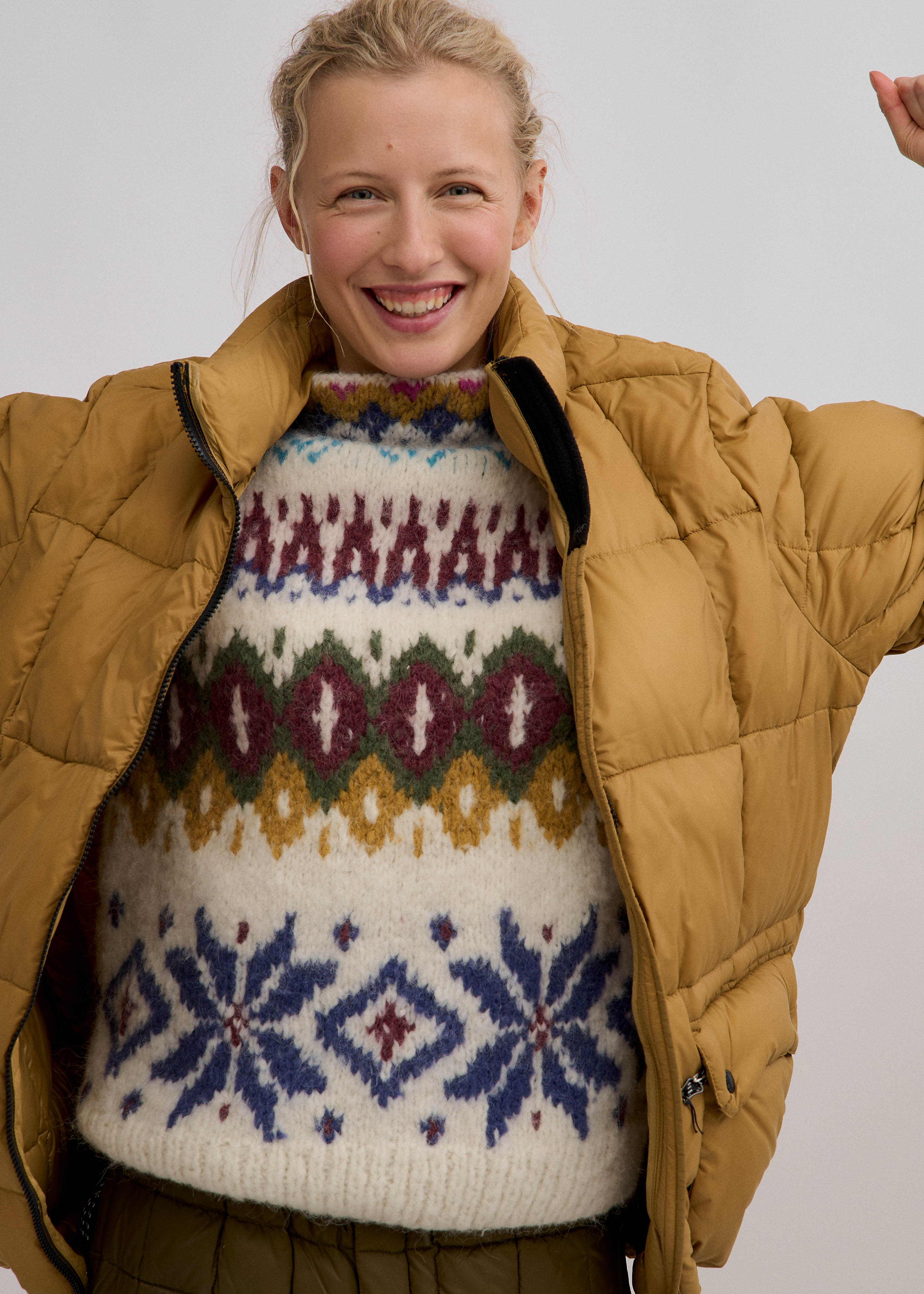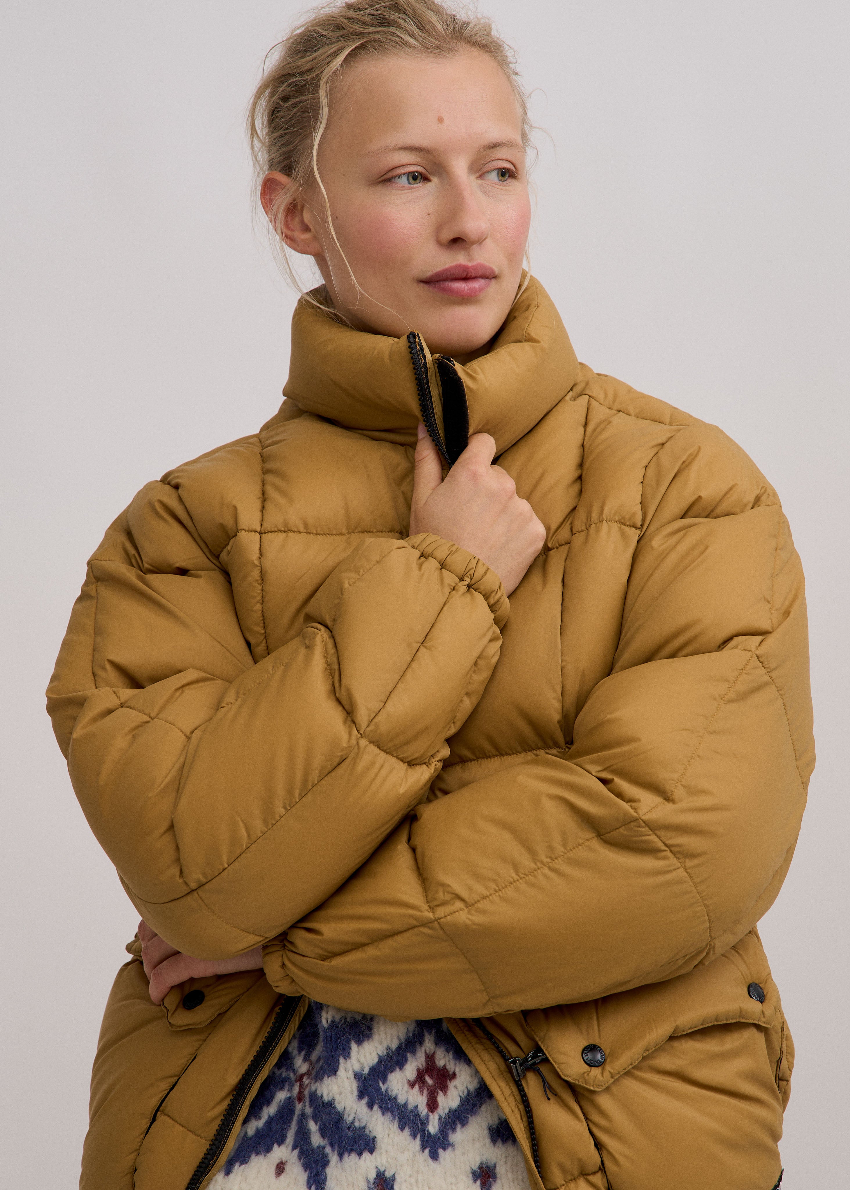 Leichte Jacke von Taion, Stehkragen, Zwei-Wege-Reißverschluss, Pattentaschen mit Druckknöpfen, elastische Ärmelbündchen, gerader Saum, gefüttert.