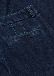 Jeans 'Via Amorari' von via Masini 80 aus weicher Baumwolle mit schmaler Krempe, Gürtelschlaufen, Knopf- und Reißverschluss, Bügelfalten, seitliche Eingriffstaschen, zwei Paspelgesäßtaschen.