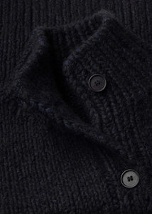 Handgestrickte Strickjacke von Wommelsdorff aus einer edlen Kaschmir-Seiden-Qualität, Effekt-Strick, Stehkragen, Knopfleiste, überschnittene Schultern, lange Ärmel, zwei aufgesetzte Taschen, gerader Saum.