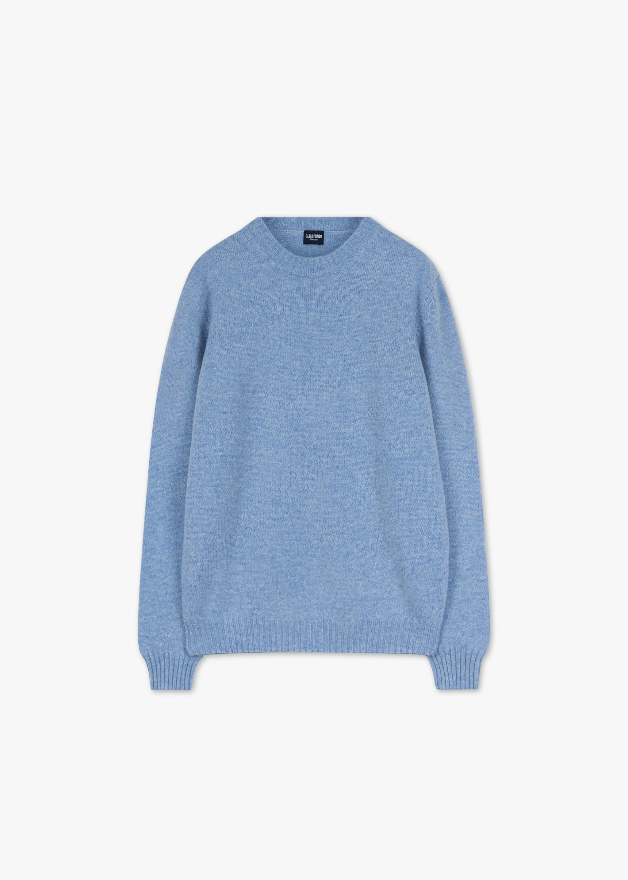 Strickpullover von Carlo Piombo aus weicher Lammwolle, Rundhalsausschnitt, gerippte Abschlüsse, gerader Saum.