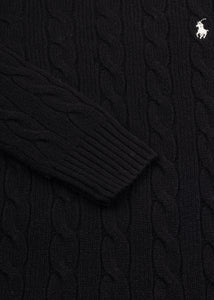Kurzer Zopfstrickpullover von Polo Ralph Lauren aus einer hochwertigen Woll-Kaschmir-Mischung, Rundhalsausschnitt, lange Ärmel, gerippte Abschlüsse, gerader Saum.