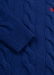 Kurzer Zopfstrickpullover von Polo Ralph Lauren aus einer hochwertigen Woll-Kaschmir-Mischung, Rundhalsausschnitt, lange Ärmel, gerippte Abschlüsse, gerader Saum.