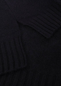 Superweicher Strickjacke von Yindigo AM aus Kaschmir, Stehkragen, überschnittene Schultern, gerippte Abschlüsse, gerader Saum mit Seitenschlitzen.