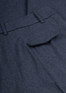Lange 'Carlotta Pants' von PiaLea aus weichem Flanell, Bundfalten und Bügelfalten,  Gürtelschlaufen, Knopf- und Reißverschluss, Taillenabnäher am hinterem Bund, Münztasche, seitliche Eingriffstaschen, eine Gesäßtasche.